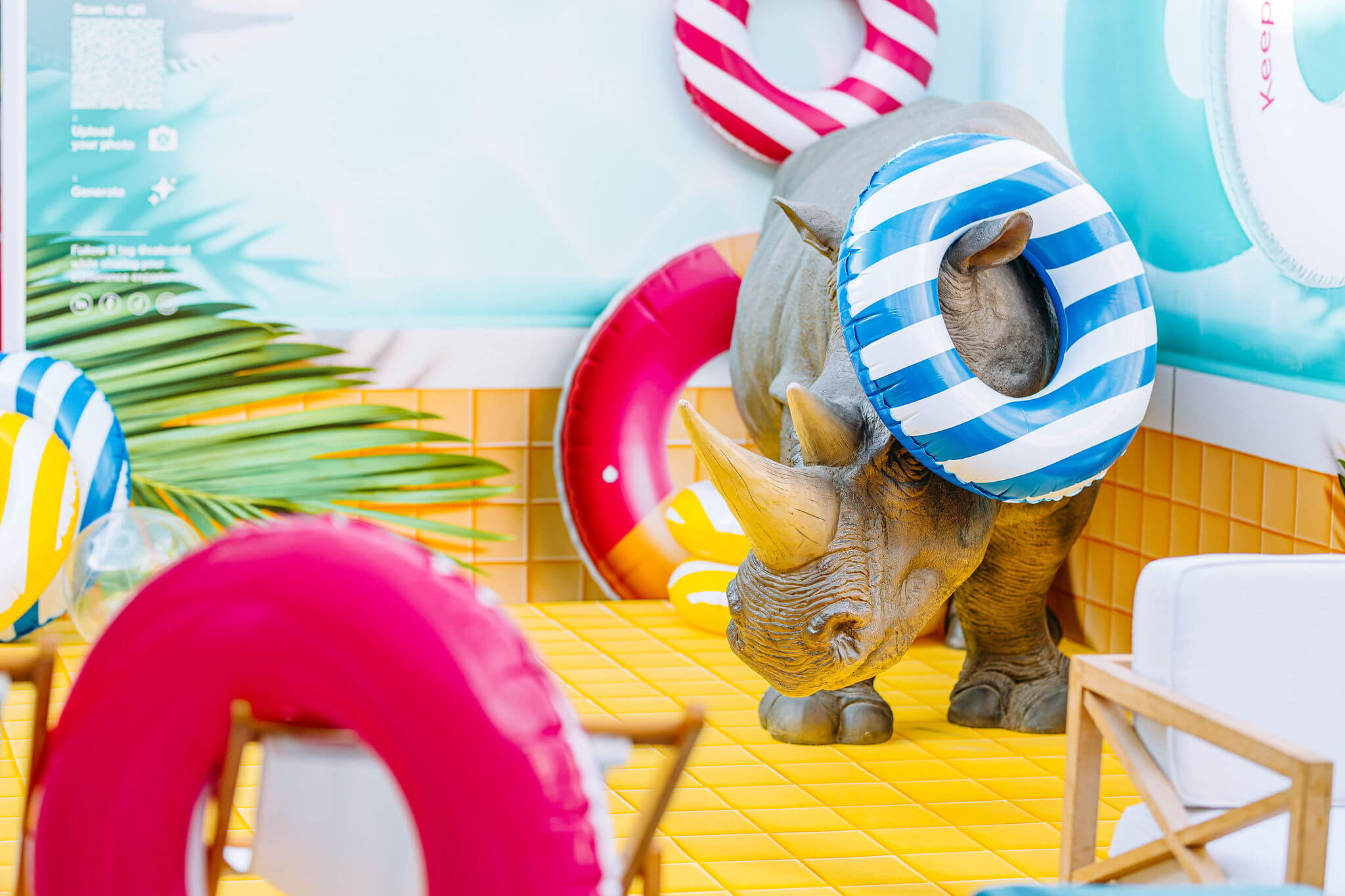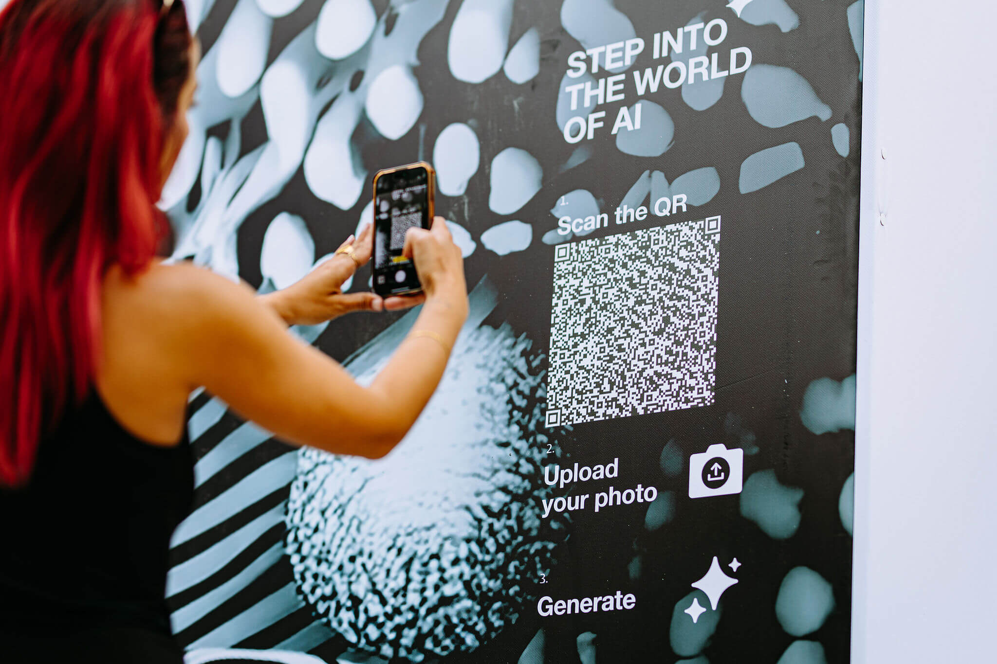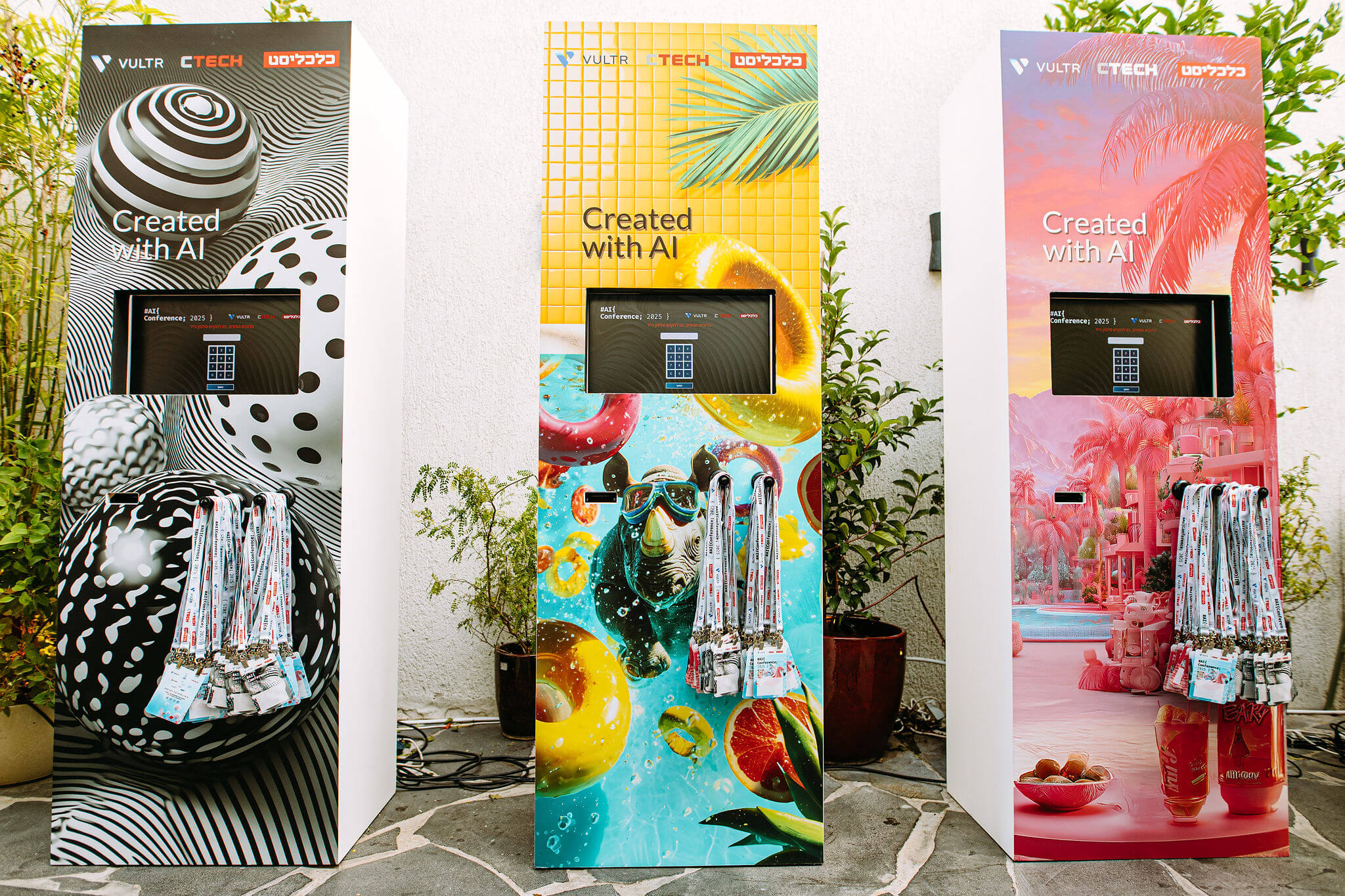 We created three AI-generated worlds, where everything — from color palettes to furniture — was designed by AI. Intentional glitches and surreal distortions revealed its creative yet imperfect nature. At the center, a live AI photo station invited guests to step inside these worlds and become part of the AI-generated reality.